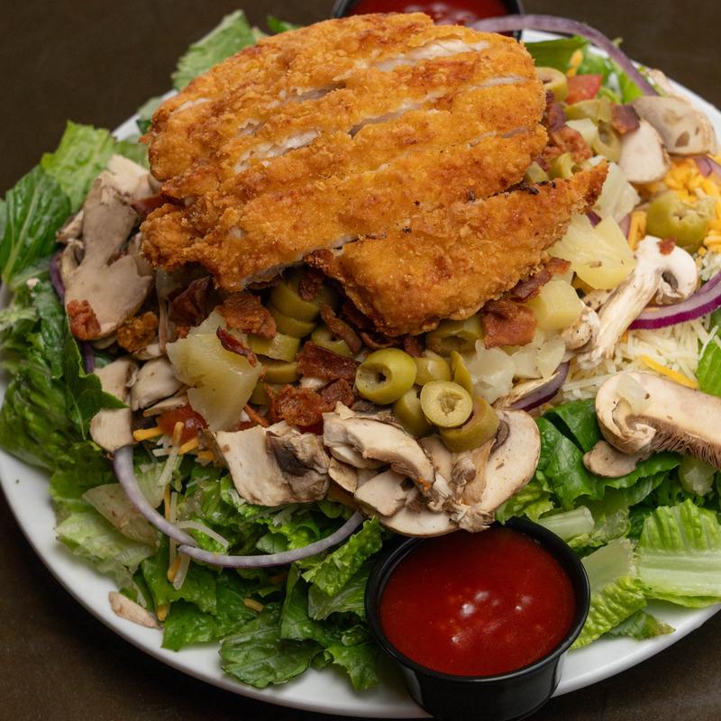 Lettuce, tomato, bleu cheese dressing or crumbles with buffalo sauce.